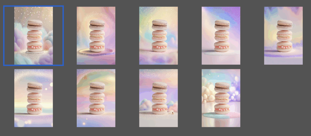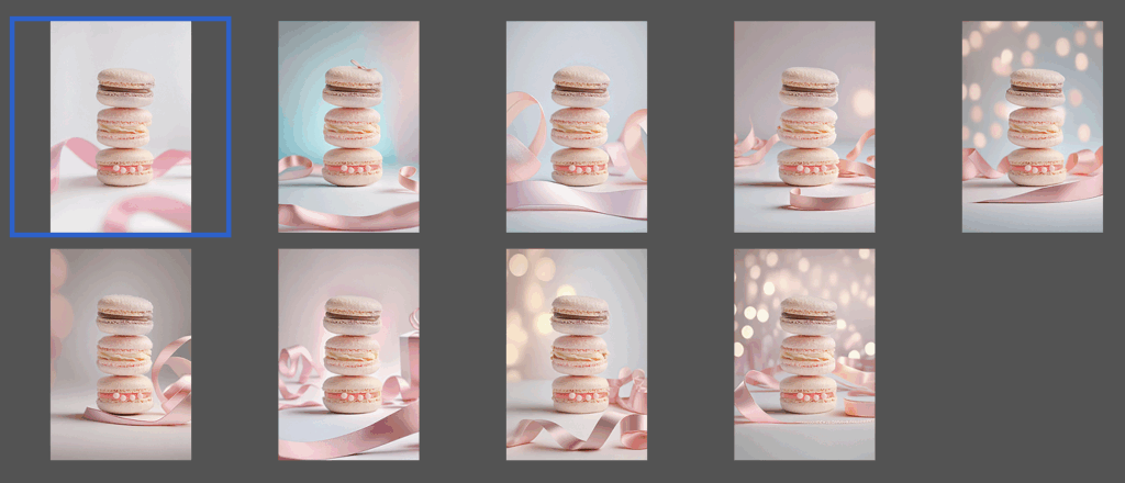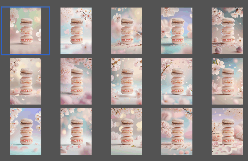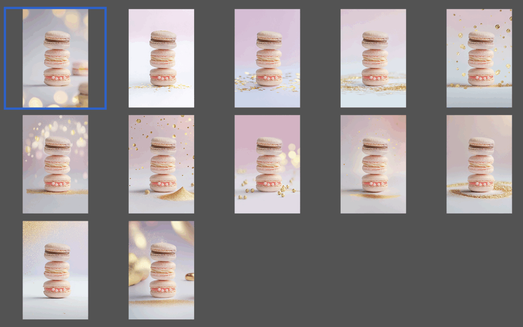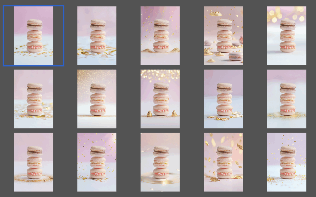 「淡いピンクとアイボリーの背景に、金箔のように細かいゴールドの輝きがふわっと散らばる。高級感のある光のグラデーション。パリのパティスリーのような上品でフェミニンなテイスト。」