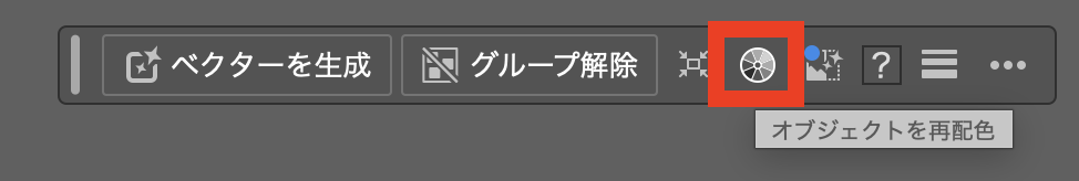 もしくは、コンテキストバーの「生成再配色」をクリック