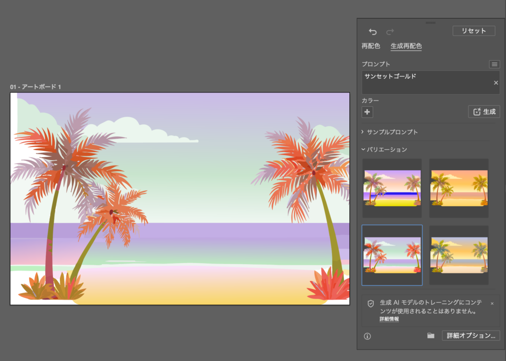 テキストプロンプトだけで配色を自動変更できる機能